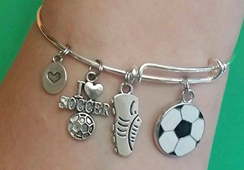 -. Title : Adjustable Soccer Expandable Bangle Charm Bracelet - Personalize add an initial charm