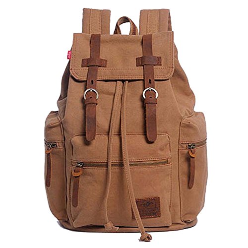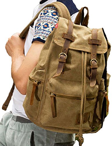 -. Title : BININBOX Men's Retro Vintage Canvas Leather Backpack Daypacks Rucksack Bookbag Satchel Hiking Bag
