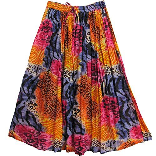 Multicolor Animal Print Indian Cotton Crinkle Broomstick Bohemian Long Skirt