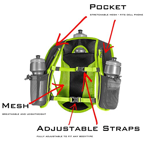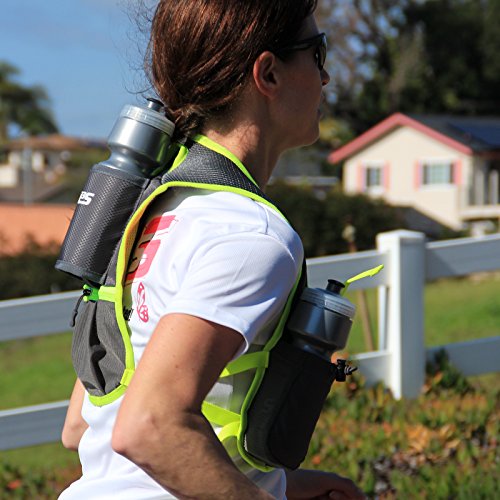 Studio : SLS3 Publisher : SLS3 Binding : Misc. Product Description You train hard and stay hydrated. But carrying your water supply is a hassle. Especially when bottles bounce around or get in the way of your arm-swing.? We've got you covered.?Our lightweight hydration vest / backpack for men and women keeps water bottles stable on your core (where there is less movement) and out of the way.? It comes with three 17 fl. oz bottles - 2 for the front and one for the back. A fully adjustable strap system lets you secure every part of the vest to conform to your body shape (not intended for smaller athletes), including a chest strap that moves up and down.? The vest extends over your shoulders and just below your shoulder blades, creating a streamlined backpack for an extra bottle, gel packs and small towel.? And when you need to grab a drink, the pull-top bottles slide out easily from the stretchy front pockets.? To keep everything you need within reach, you also get additional front storage pockets. You can easily slip your phone into one of the expandable, zippered pocket with its easy-pull tab. This easy-to-wear, no irritation, lightweight hydration vest lets you hydrate and access all your essential stuff -- perfect for uninterrupted training.? 0
