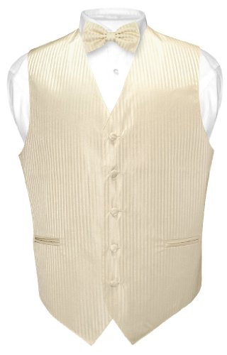 - Title : Men's Dress Vest & BOW Tie Egg Yolk Cream Striped Vertical Stripes Design Set