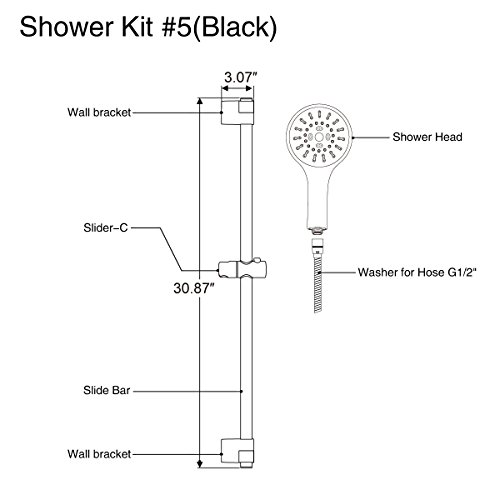 Includes Everything You Need For Installation - 3 settings Hand Held Shower Head, 59" Shower Hose, 30" Slide Bar and Hardware. (Just requires drilling 2 holes in Shower Wall to mount the Slide Bar.)