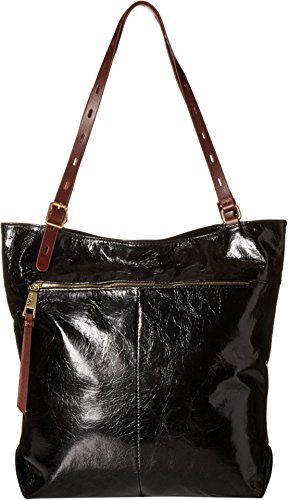 Top zip closure. Contrast leather shoulder straps. Front zip pocket and back exterior slip pocket. Interior features a back wall zip pocket and two slip pockets. Flat base for upright structure.
