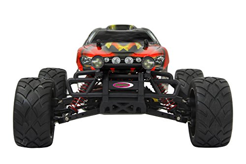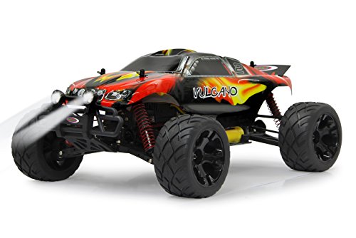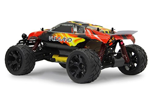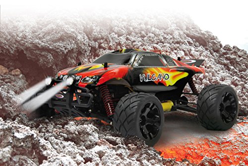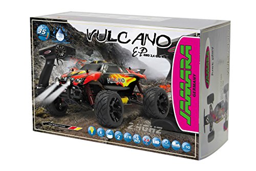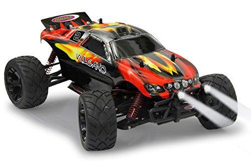 Jamara Vulcano Monstertruck 1:10 4WD Lipo 2,4G LED Allrad, Elektroantrieb, Akku, 40Kmh, Aluchassis, spritzwasserfest, Oldruckstossdampfer, Kugellager, Fahrwerk einstellbar, fahrfertig