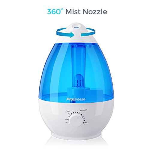 Pro Breeze 3.8L (1 Gallon) Ultrasonic Humidifier for Dry Air: This large 1 Gallon ultrasonic humidifier from Pro Breeze instantly vaporises water to moisturize the air for up to 20 hours - It is perfect for use at home or in a bedroom that suffers from dry air. An integrated tray that allows you to add your own essential oils means this also doubles up as an aroma diffuser should you wish to add a scent to the air. By keeping your living space at the right humidity, you can help prevent sore throats, colds, flu, congestion and dry skin. Studies have shown that keeping indoor air at a humidity level of 40-60% reduces the survival of flu viruses in the air. Features: - Large 1 Gallon water tank capacity