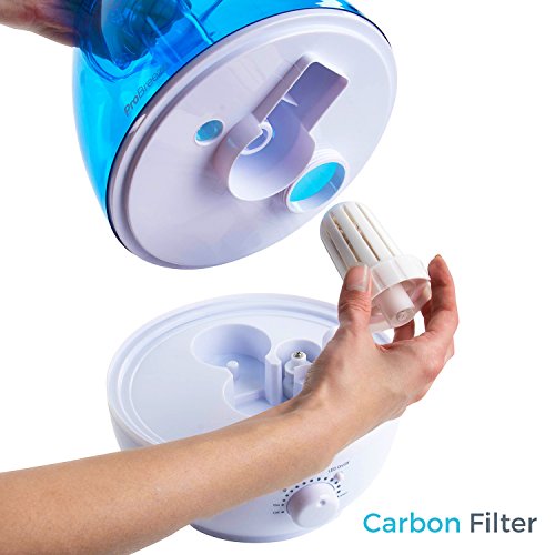Carbon Filtration System: The integrated carbon filter safely and effectively removes impurities from the water before it is vaporized. This ensures both cleaner water vapor and minimized residue left behind in the water tank. Aroma Diffuser Tray: A removable aroma diffuser tray allows for essential oils to be added to the humidifier to create a scented mist. This is kept separate from the water tank should you wish to change or remove the scented mist. Fully Adjustable: As opposed to only LOW and HIGH speed settings, the integrated control dial allows you to fully adjust the speed of vapor output. The attached nozzle allows you to direct the mist in any direction. 0 |
