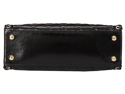 -. Feature : Made of soft, quilted leather with gold-tone hardware / Measures 12.75" W x 9" H x 5.5" D Dual fixed handles with 4.5" drop, detachable shoulder strap with chain detail and 11" drop / Exterior features top snap closure, Signature Lock & Key detail, grommet & leather whip-stitch edging detail, and 4 bottom metal protective feet / Interior features 1 side wall zip pocket, 2 side wall slip pockets, 1 key clasp and black logo jacquard fabric lining / Imported