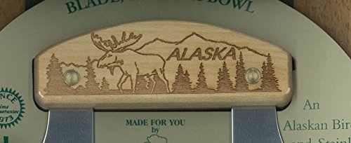 8" Block Ulu Bowl Set Birch Handle Roaming Moose, 6.25" Inupiat Blade