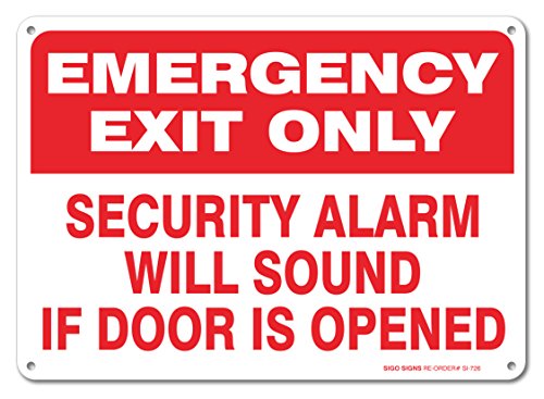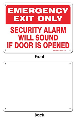 Emergency Exit Only Security Alarm Will Sound If Door is Opened Sign, Large 10 X 7" Aluminum, For Indoor or Outdoor Use - By SIGO SIGNS