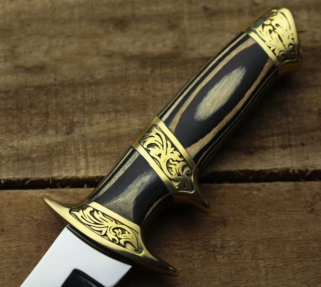 | [해외] 전술 정통 자기 방어 작은 직선 나이프 야외 생존 칼 높은 경도 전술 구리 핸들 수제 칼 |