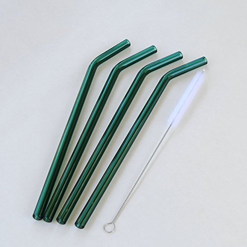 Glass Straws 9in9mm Bent with Cleaning Brush 4 Pack (Teal)