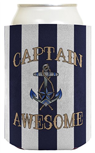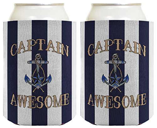 Funny Beer Coolie Captain Awesome Nautical Sailing Boating 2 Pack Can Coolie Drink Coolers Coolies Nautical Stripes