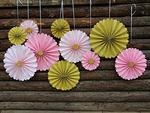 Mybbshower Pink Gold Hanging Paper Flowers Decor Kit for Girls Birthday Party Pack of 10