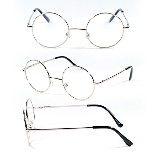 (#VRO1 Slv/GM) 2 Pairs Gun Metal & Silver Frame Round Reading Glasses with Spring Hinged (Strength +2.00)