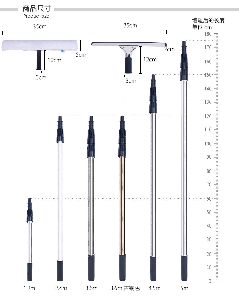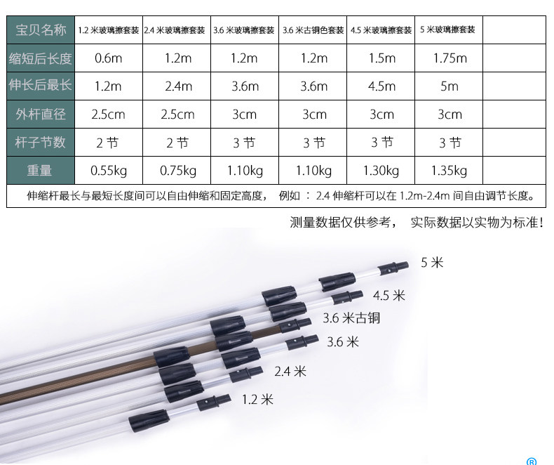 伸缩杆最长高度 1.2m 2.4m 3.6m 4.5m 5m 6m 7m 8m 9m