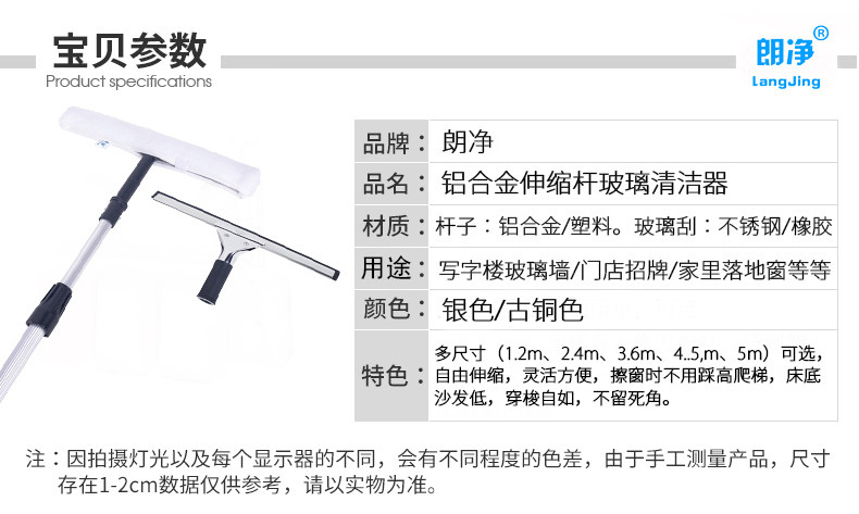 伸缩杆最长与最短长度间可以自由伸缩和固定高度,例如:2.4伸缩杆可以在1.2m-2.4m间自由调节长度。