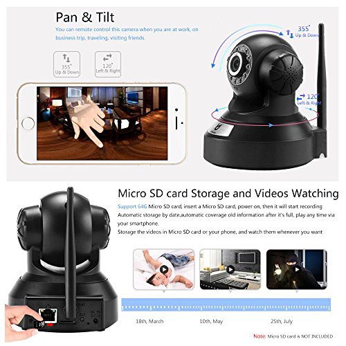 With this surveillance camera, you can watch your room, yard, baby, toddler, elder person, nanny and pet at anytime and from anywhere.