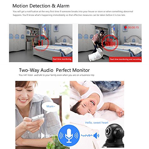 Motion Detection, Alarm Push and Recording: Automatically detect moving objects, real-time notifcations push to your phone. You'll know what measures to take immediately before it's too late.