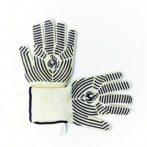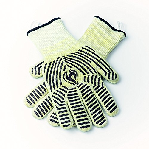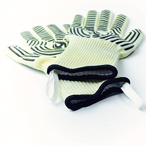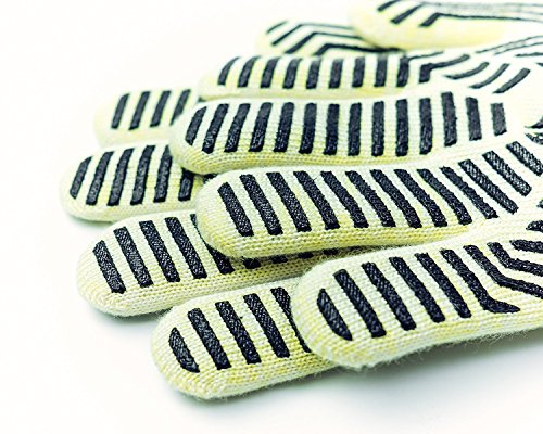 INNOVATIVE CUT RESISTANT MATERIAL: Our gloves are made of Kelvar Aramid Fiber. We also added ANOTHER layer of heat resistant Kelvar material(The yellow lace part), normally used in aerospace and military applications. Thick yet lightweight. It will not catch fire so you can have a peace of mind while handling bbq, campfire and fireplace.