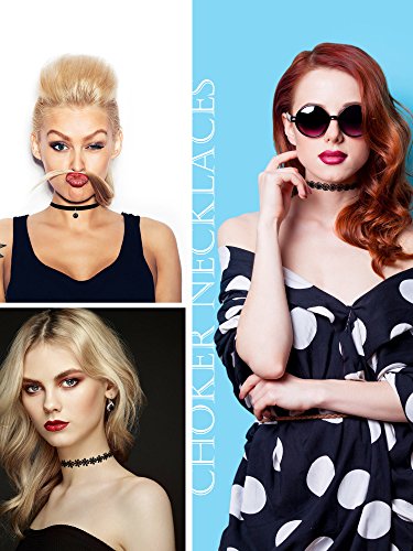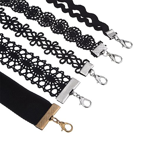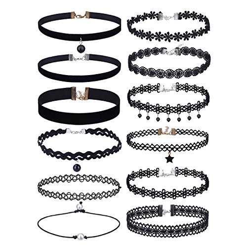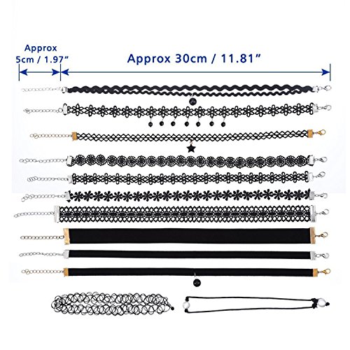 Outus Choker Necklaces Set Lace Necklace Velvet Stretch Tattoo Choker, Black, 12 Pieces
