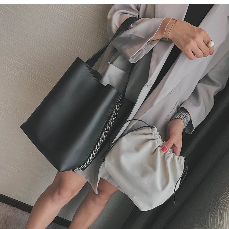bolso negro::Solid pu leather women bag ladies bag