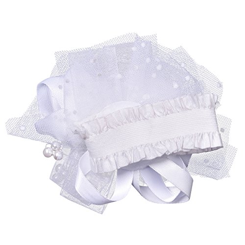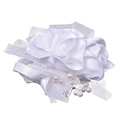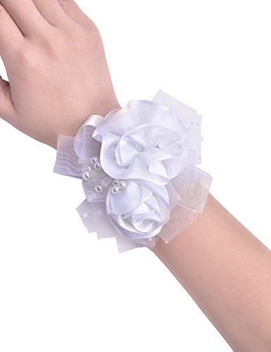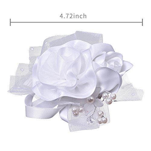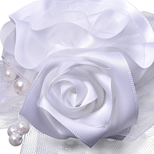 Ribest Bridesmaid Wedding Girls Prom Party Wrist Corsage Bracelet Hand Flowers with Artificial Pearls White Pack of 2