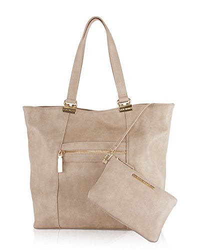 Product Description Walk the town in style when you take the Chic and classic Steve Madden Brileyy tote along, Features a faux leather exterior, front zipper pocket, magnetic closure, double handles and removable pouch. This great handbag is roomy, fashionable and the perfect addition to your purse collection! 0