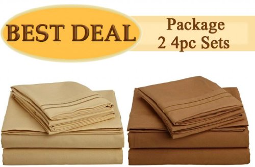 - Title : King Size Bed Sheet Set, Best Deal!!! Package of "2" 4pc sets - Gold, Mocha