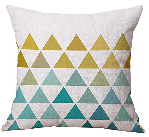 Studio : BLUETTEK Publisher : BLUETTEK Product Description Decorative Pillows gradually become a common home use and decoration accessories in home life, it can be put in your arms to play a warm and protective role, but also increase interests in home life, different pillows can bring a different style and fashion. Product details: Front: Triangle pattern Back: Plain natural fabric color (ivory white/beige white) Material: 100% grade A cotton and linen Size: 18" * 18" / 45cm x 45cm, 1~2 cm deviation is allowed due to hand-cutting and sewing Package included: 4Pcs Cushion Cover without Pillow inserts Product Features: The material of this pillowcase is top quality cotton and linen, durable and environmentally friendly which makes you feel comfortable. The zipper glides smoothly and allows easy insertion and removal of pillow inserts, can unpick and wash.
