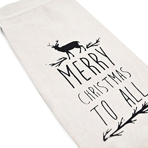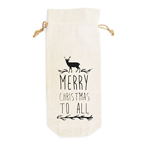 Jetty Home "Merry Christmas" Wine Bottle Gift Bag with Drawstring, Ivory