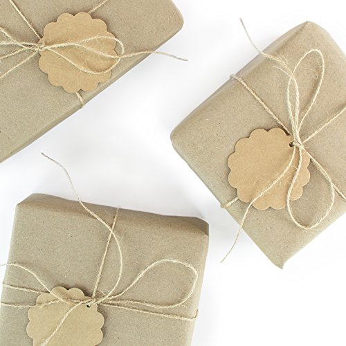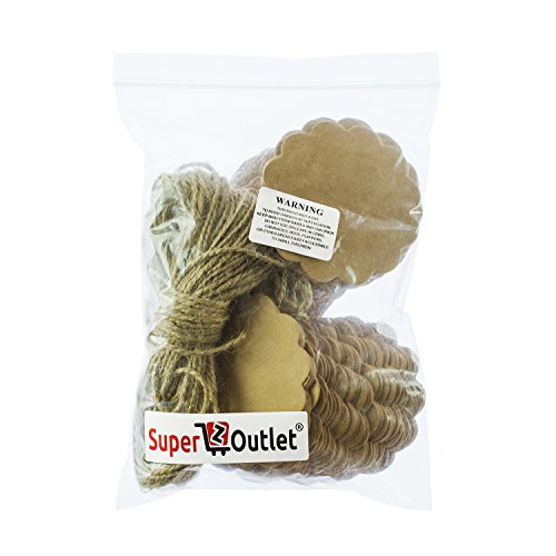 Brown Craft Scalloped Paper Label Tags with Jute Twines String for Birthday Party, Wedding Decoration Gifts, Organizing, Arts & Crafts (100 Pack)