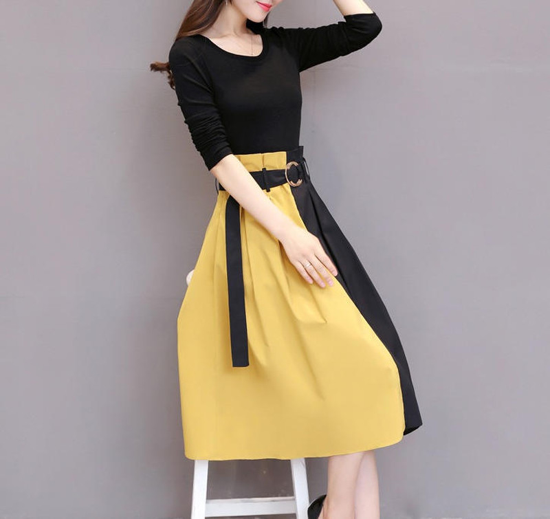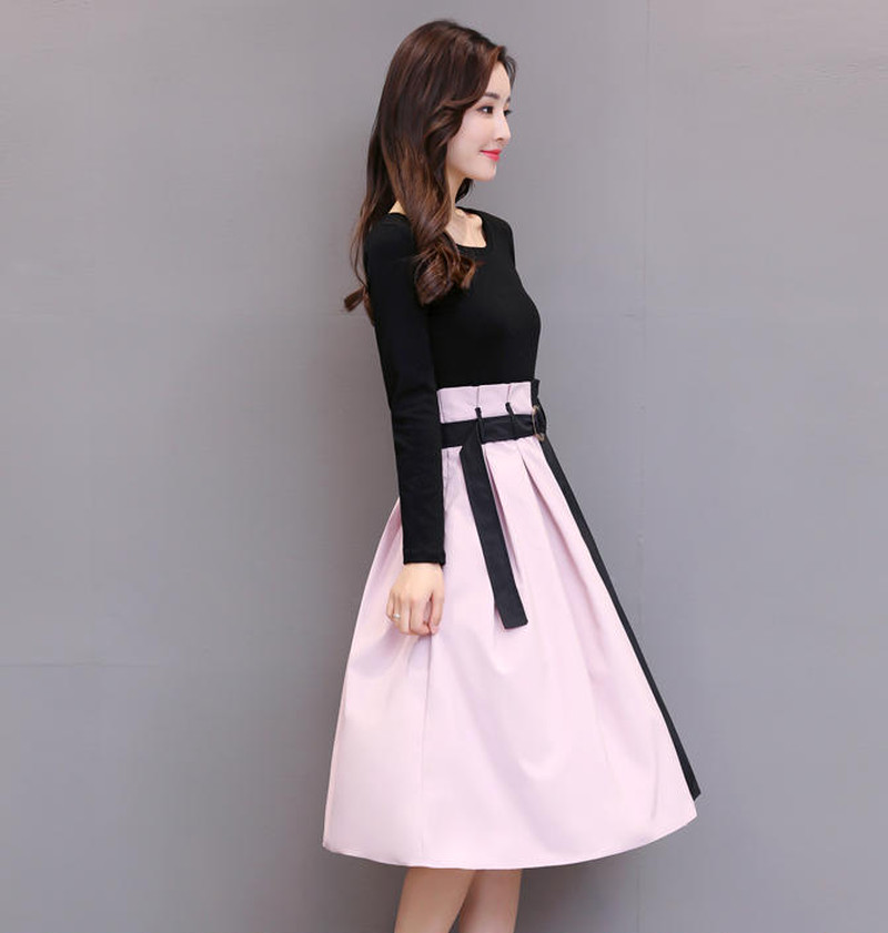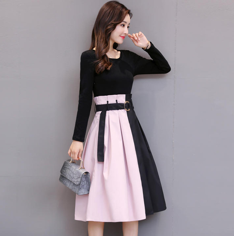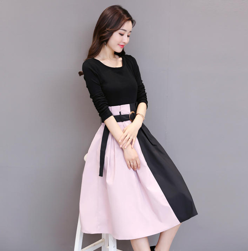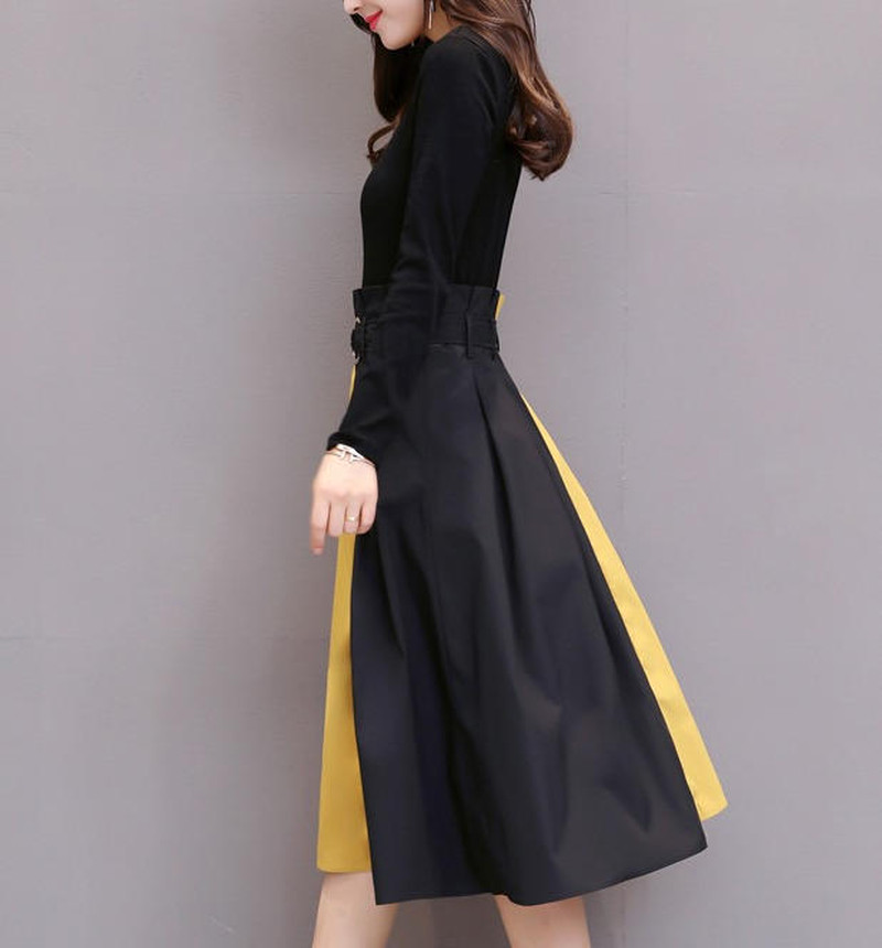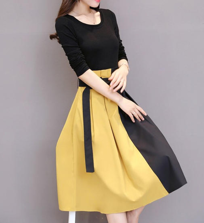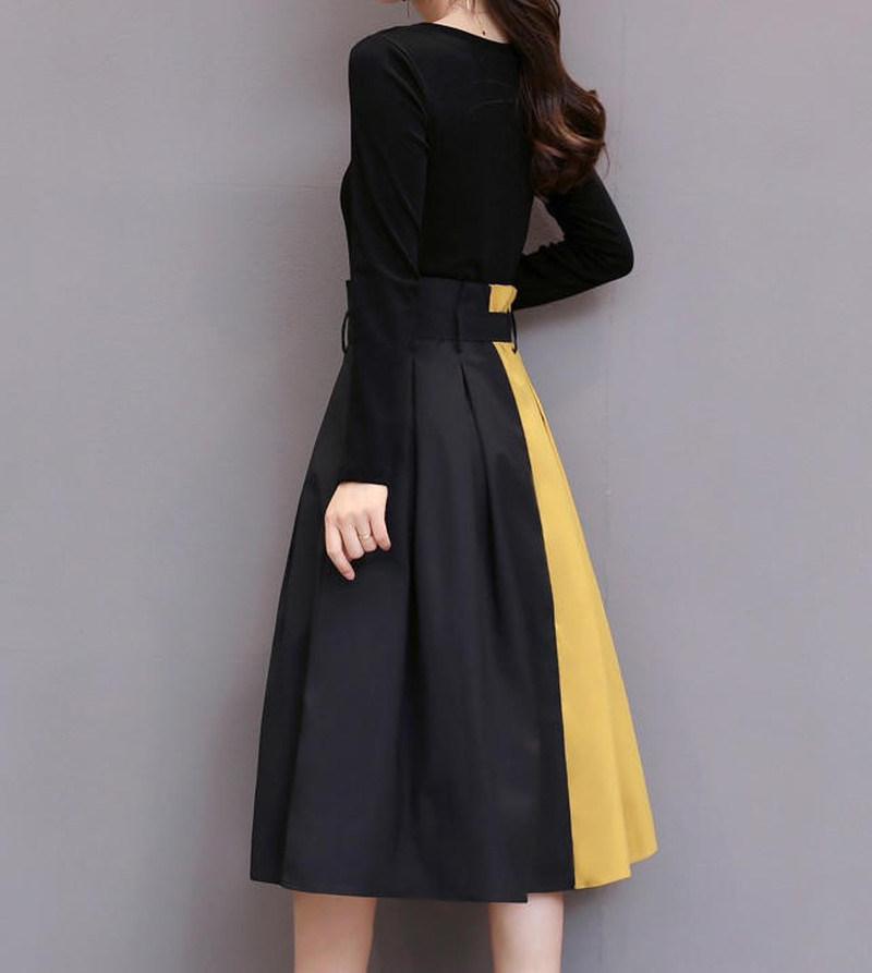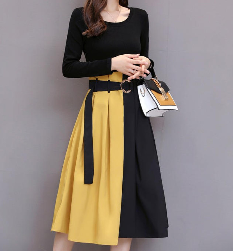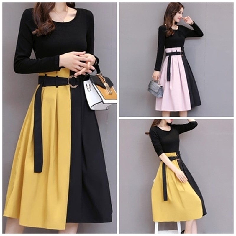 ♢ポイント♢ バイカラーの切替えデザインがおしゃれな ドッキングワンピースです♪