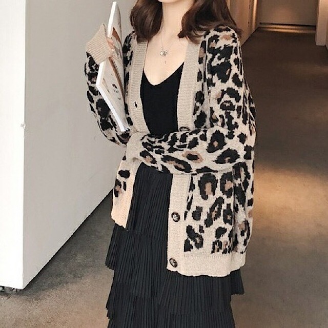 全体に施されたヒョウ柄とゆるっとしたデザインのギャップが印象的で目を引きます。