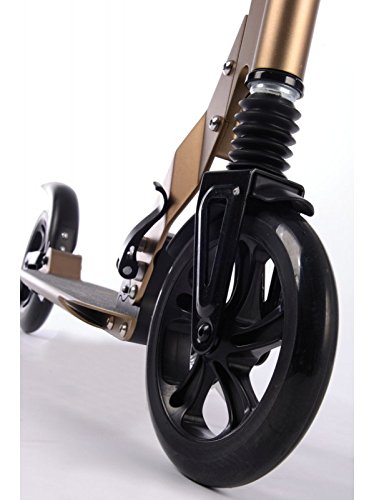 - High-tensile springs front and back isolate riders from uneven urban sidewalks, and the rear spring can be adjusted to your weight