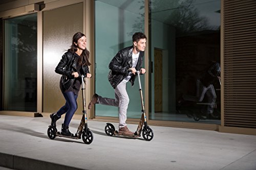 - Robust construction and adjustable height handlebars to accommodate larger, taller adults, yet lightweight enough for easy fold and carry