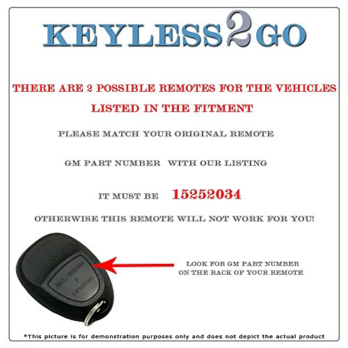 There are two possible remotes for the vehicles listed in the fitment guide, please make sure your original remote has PART NUMBER 15252034, otherwise this remote will not work for you.