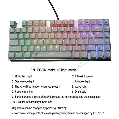 HUO JI Z-88 RGB LED Backlit Water-Proof Mechanical Gaming Keyboard with 81 Keys Anti-Ghost keys, DIY Blue Switches, White