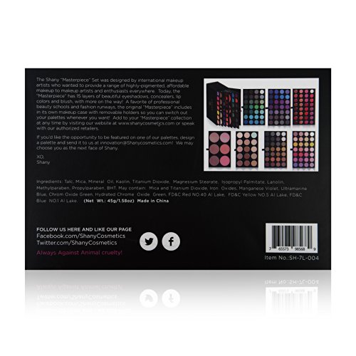 The 'All Day Affair' palette includes 28 warm-toned shades that are great for everyday to dramatic looks. This comes included as the fourth layer of the Seven Layer Masterpiece Set. All of our eye shadows are super pigmented and true to color. These 28 shades either have a matte or a shimmer finish. A little goes a long way with these long-wear eye shadows To increase its wear time (especially in humid conditions) prime your eyelids with the SHANY Eyes and Lips Primer. SHANY is a member of PETA and all of our products are cruelty-free.Feature