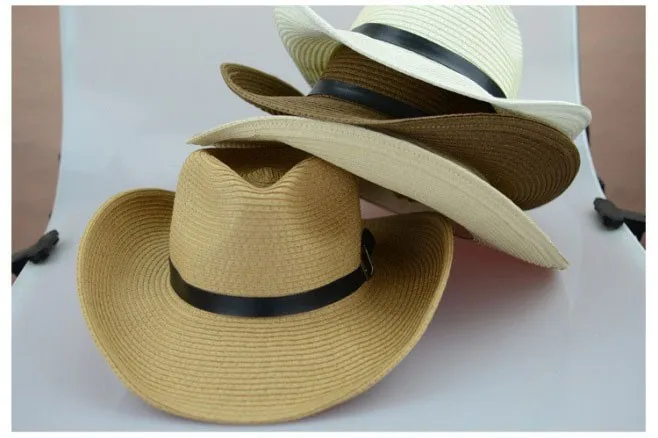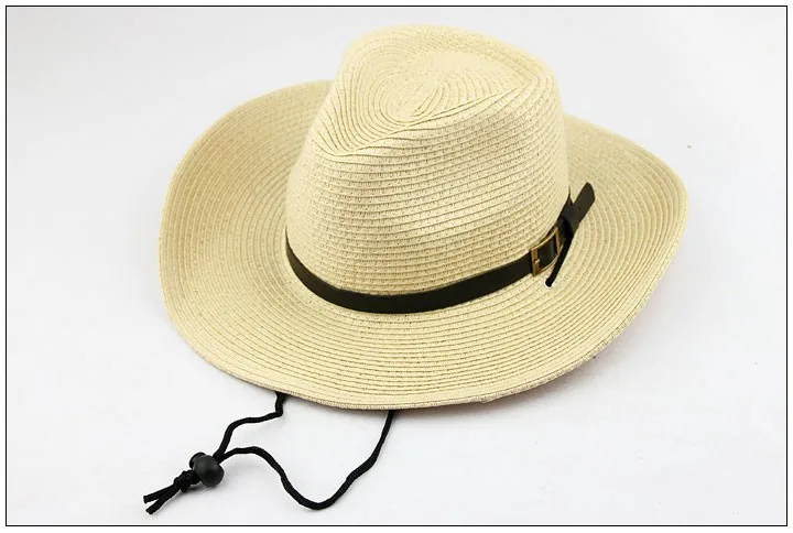 わら編み男性カウボーイ帽子付きバックル西部アメリカメンズ帽子固体カーキ