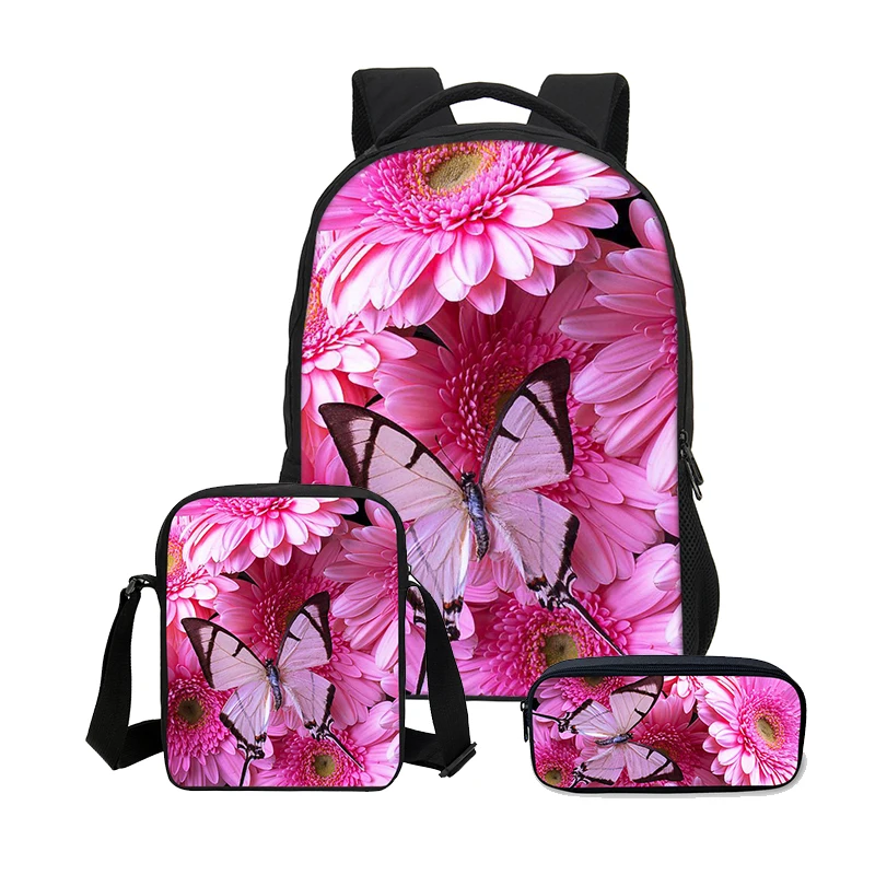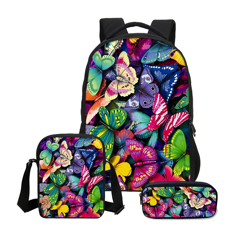 VEEVANV 3 PCS/SET Fashion 3D Butterfly Printing Bookbag Canvas Backpacks Women Shoulder Bags Children Backpacks Girls School Bag