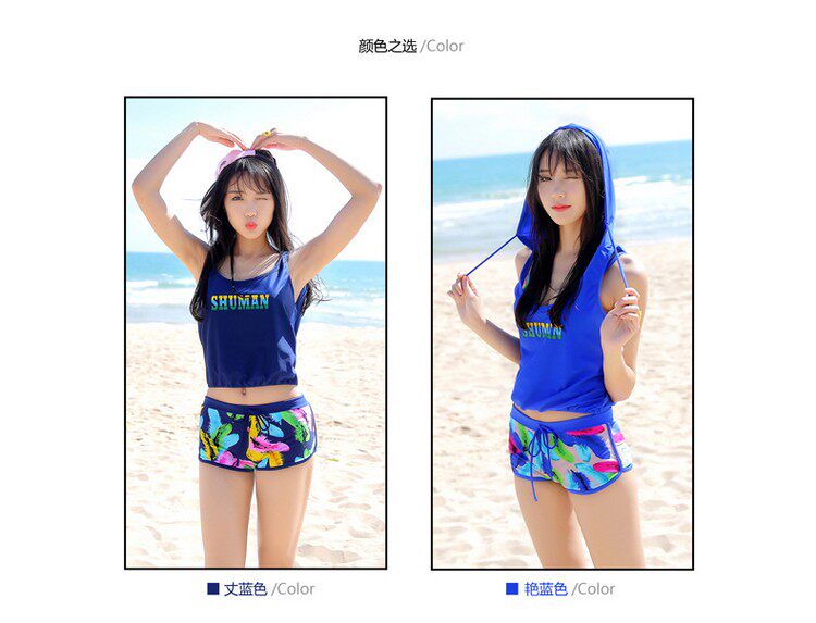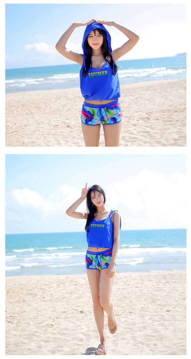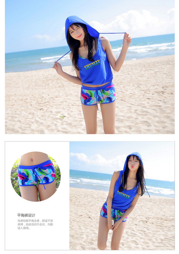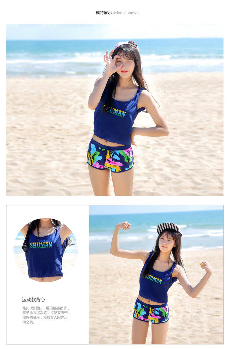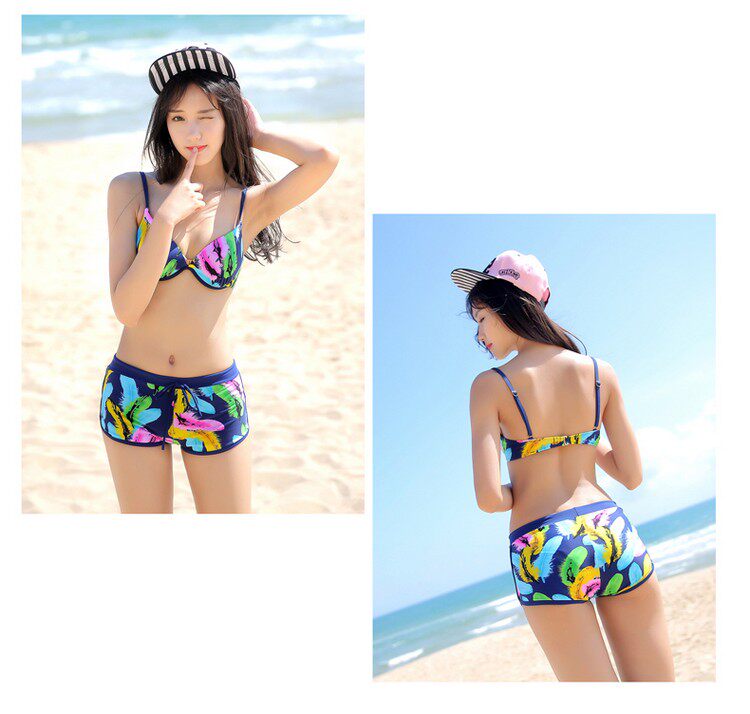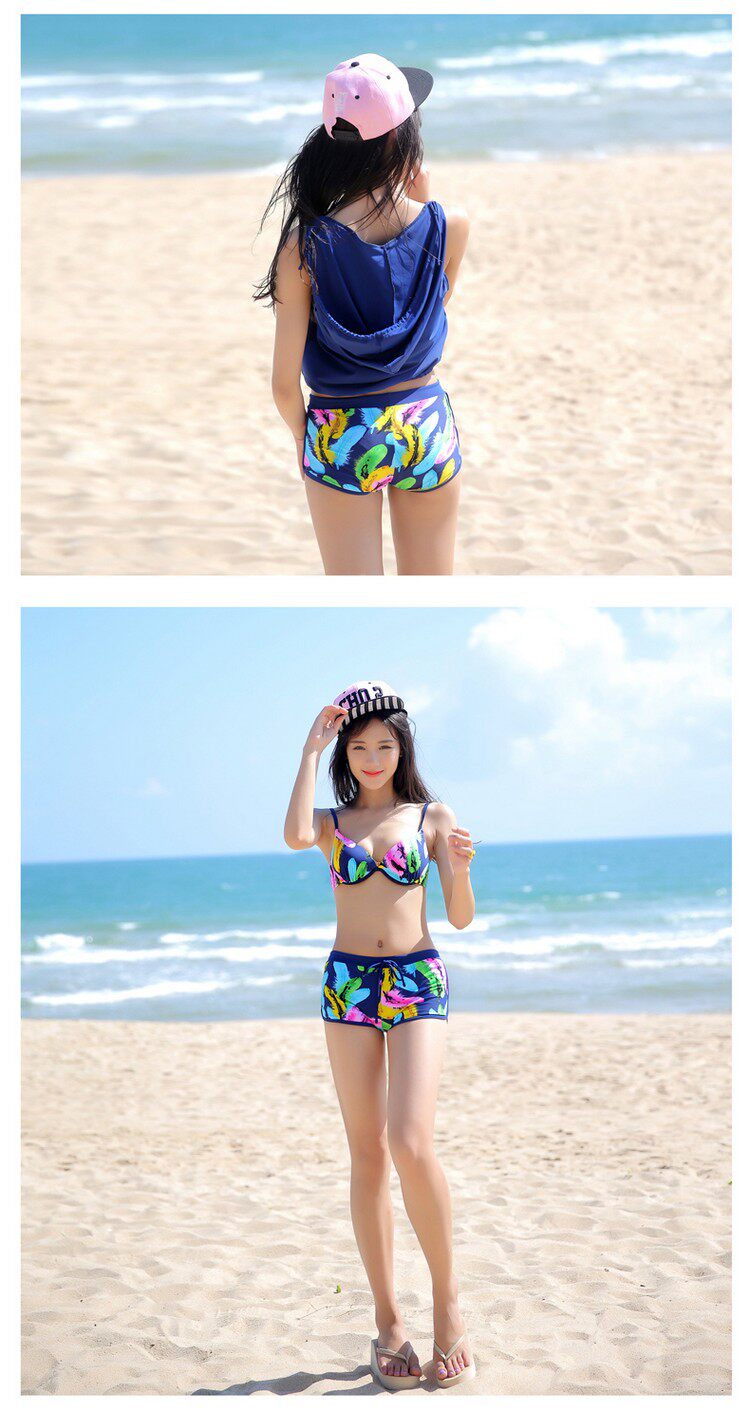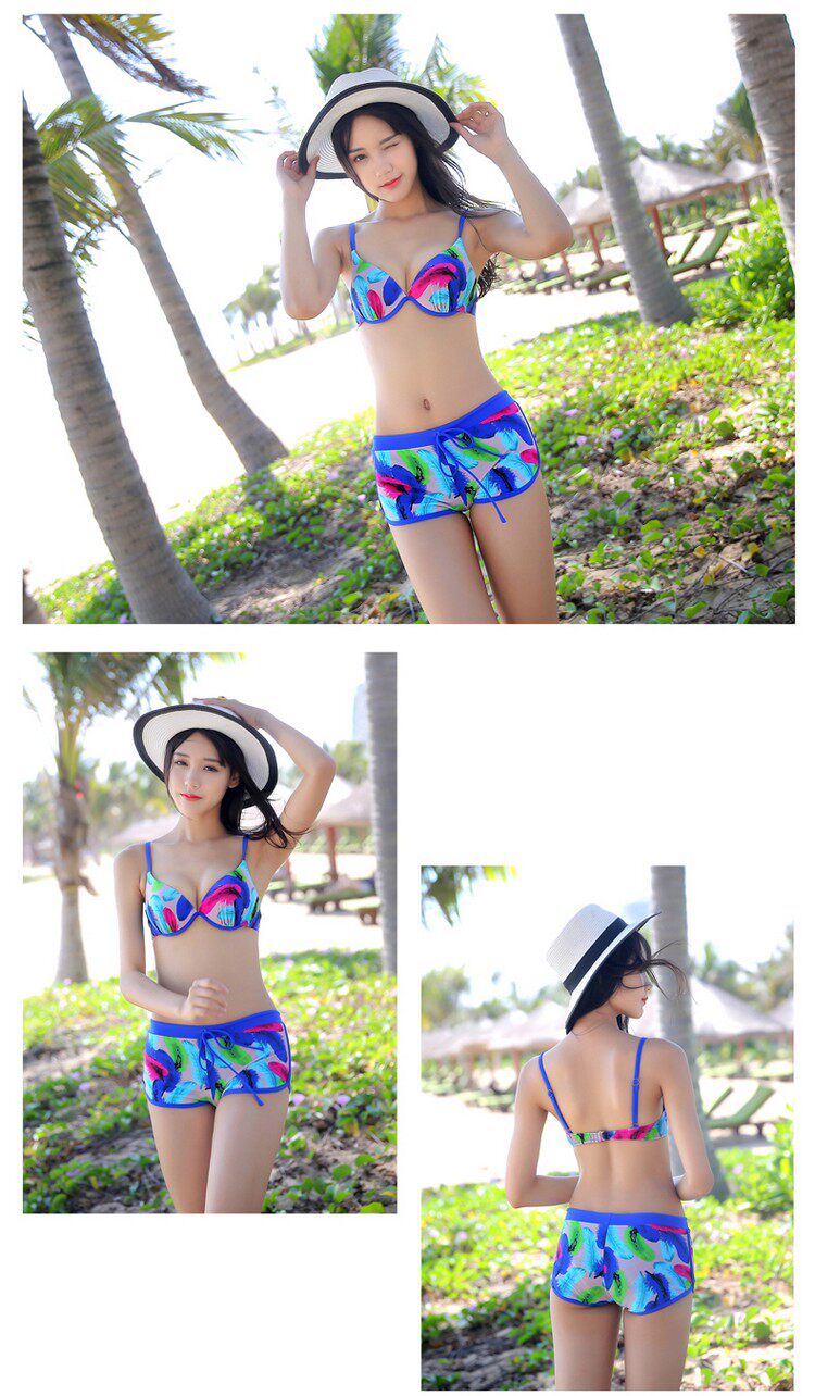 游泳衣女比基尼三件套平角背心学生小胸聚拢钢托温泉沙滩泳装