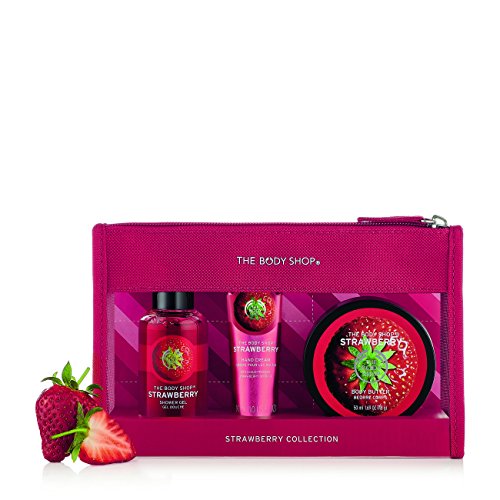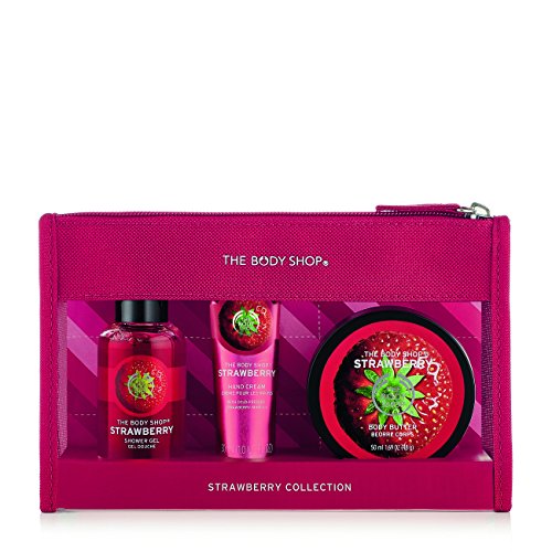 -. Feature : Make someone feel beautifully fragrant with our sweet Strawberry treats / Travel size Strawberry Shower Gel 60ml: soap-free, lather-rich, made with strawberry seed oil / Travel size Strawberry Body Butter 50ml: up to 24 hours of intense moisture / Travel size Hand Cream 30ml: helps soften and protect hands, on-the-go hydration / Reusable travel pouch