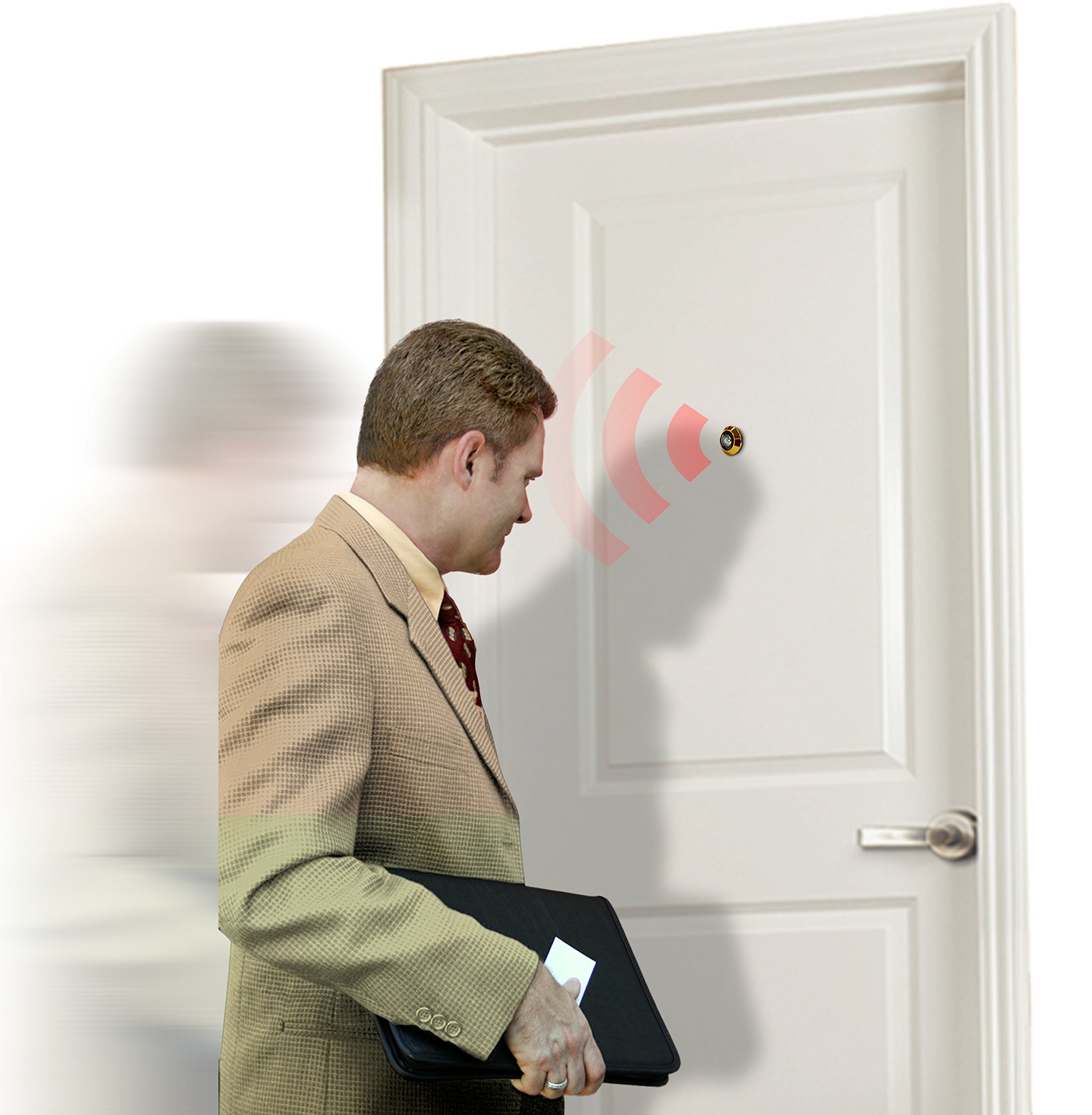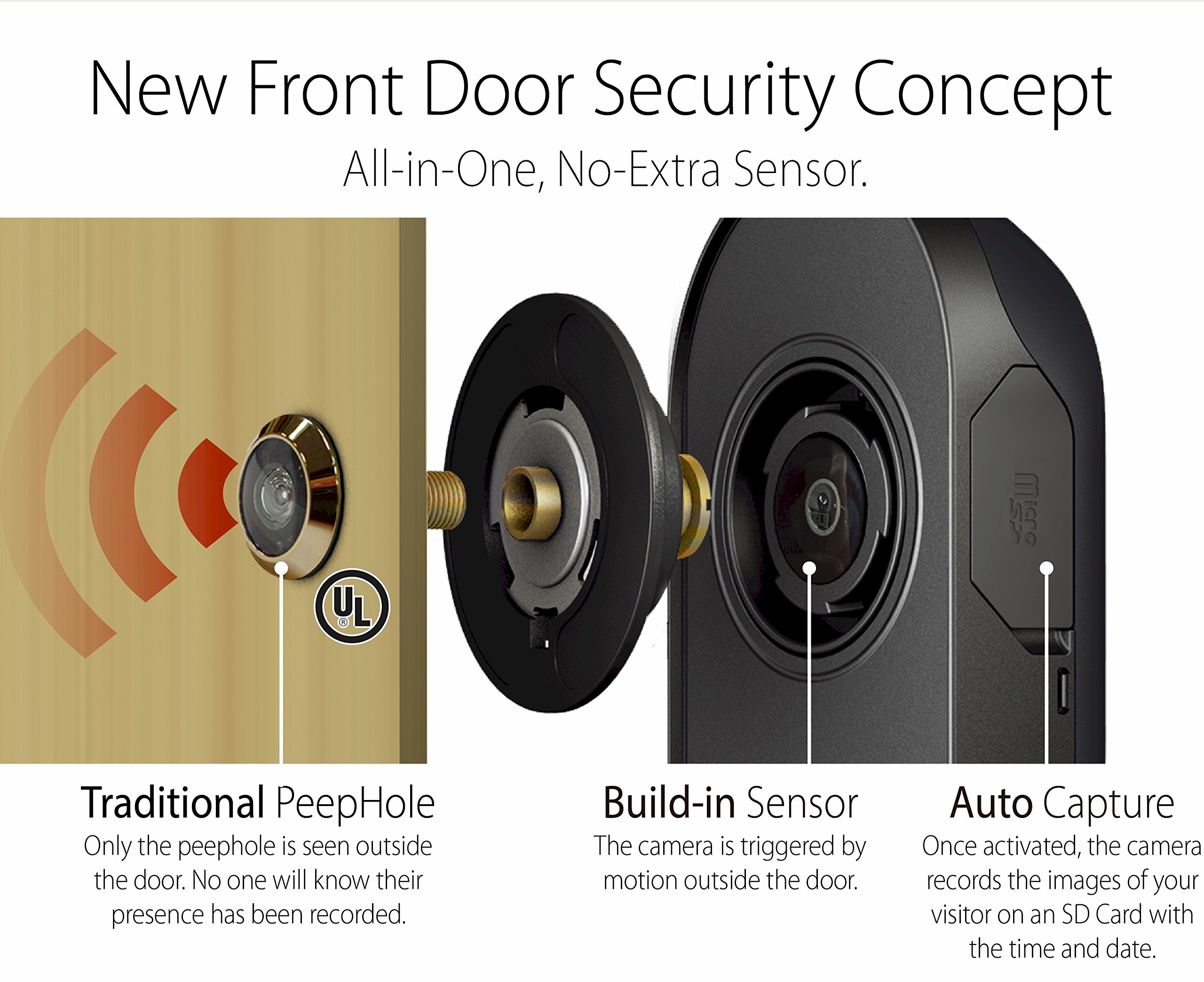Security camera with dry battery type and door scope installed type unnecessary for wiring work.
