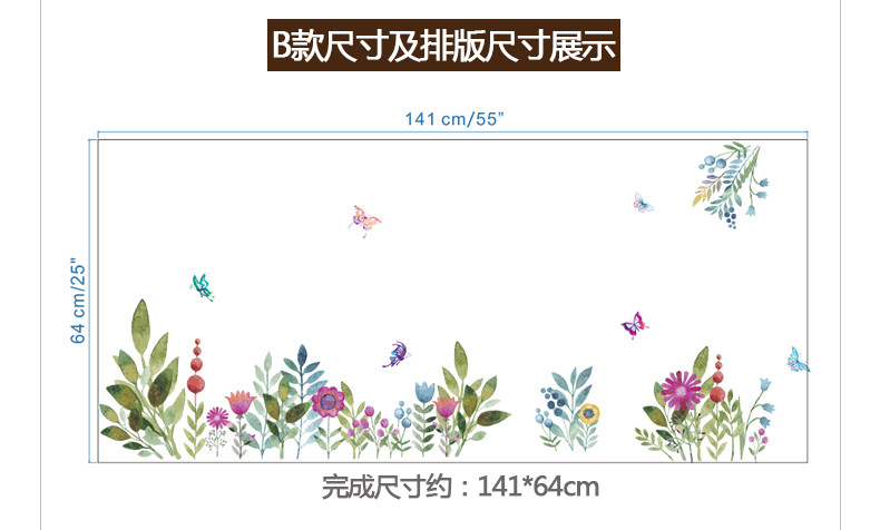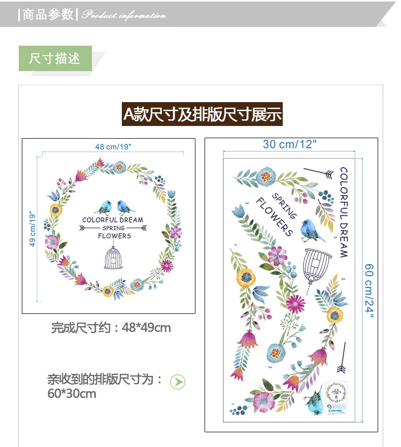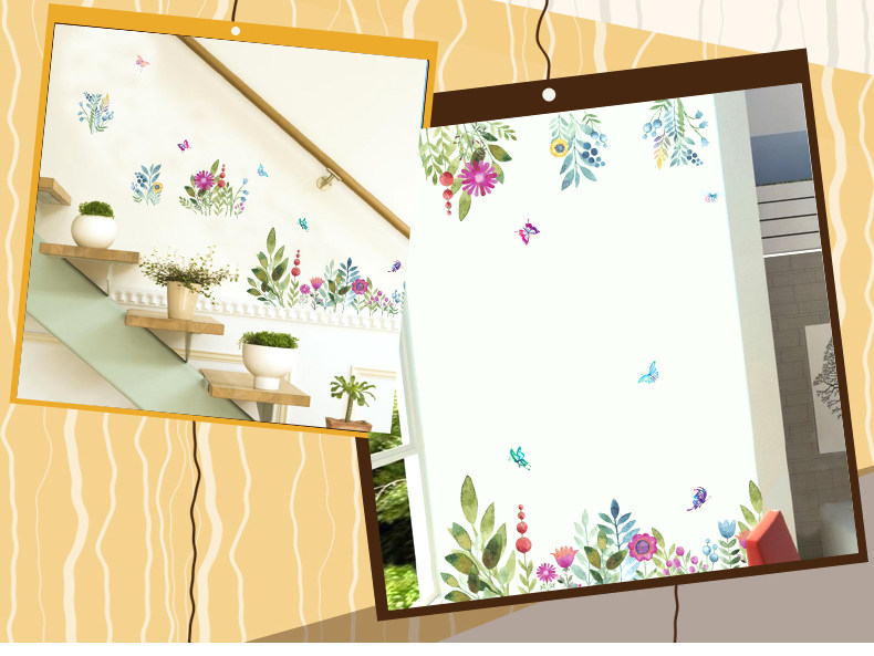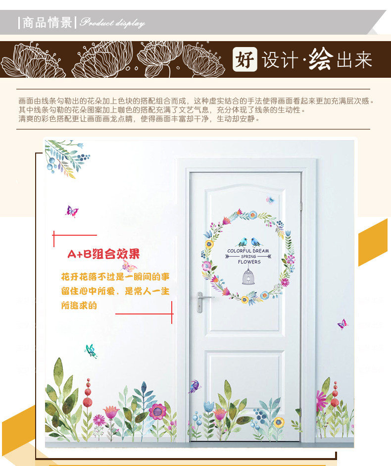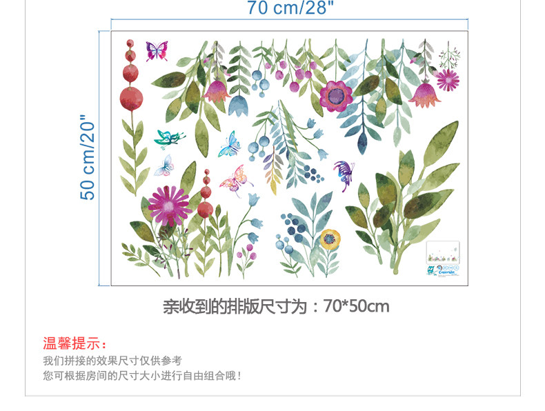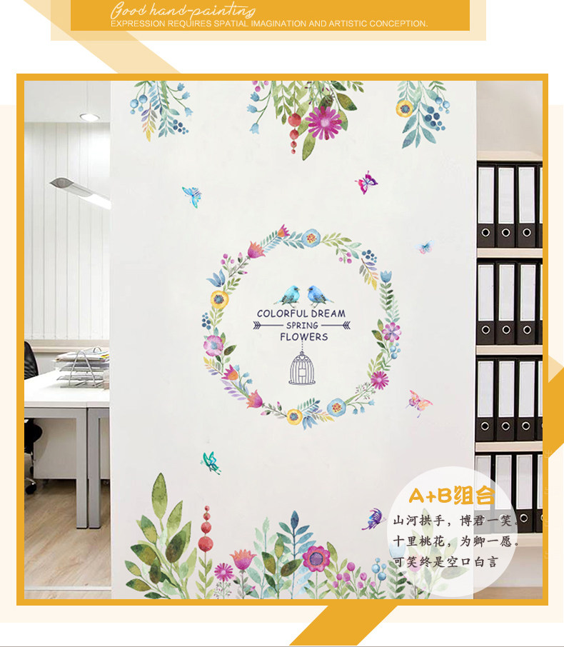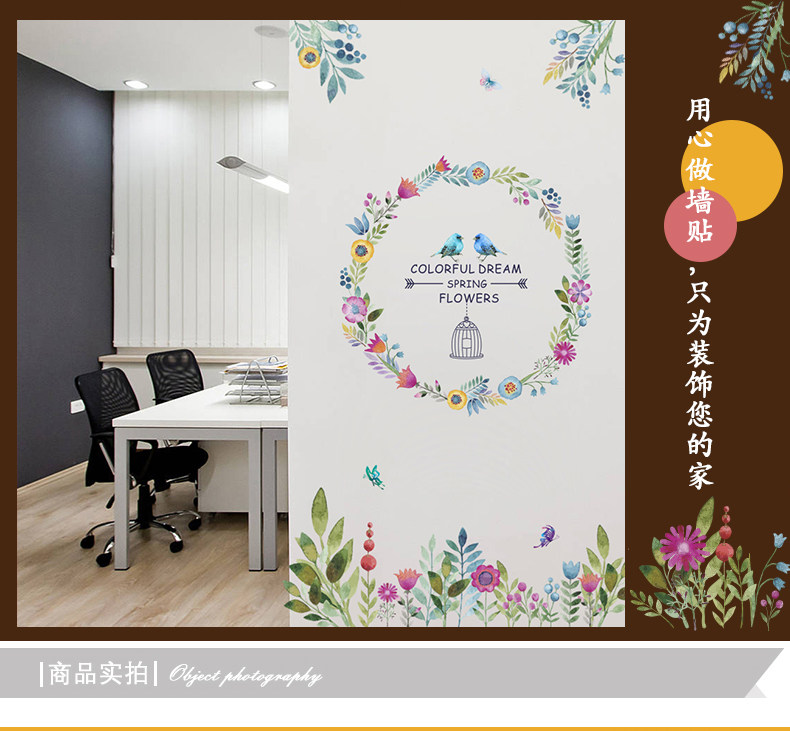 客厅卧室墙面贴纸水彩花鸟墙贴墙纸贴画自粘水彩花草浪漫装饰贴