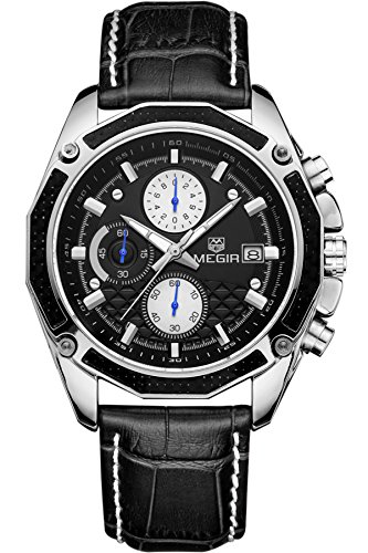 파인 드 타임 Megir 스포츠 맨즈 손목시계 레이싱 워치 인기 크로노그래프 밀리터리 방수 패션
