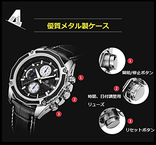 ●스포츠감이 강한 Three eyes문자판디자인고, 파일럿형 손목시계,레더 밴드에 의해 캐쥬얼한 이미지가 줍니다.포멀의 경우에 잘 쓸만합니다.친구에의 생일이나 축일의 선물로서도 굿 아이디어.