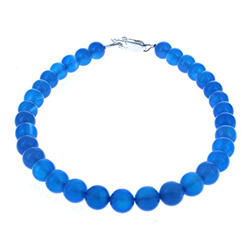 -. Title : Ladies 6mm Blue Onyx & Sterling Silver Beaded Gemstone Anklet