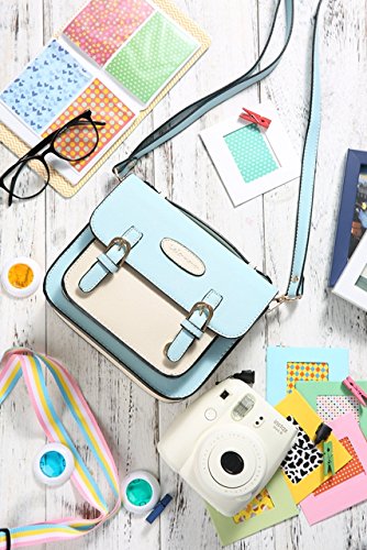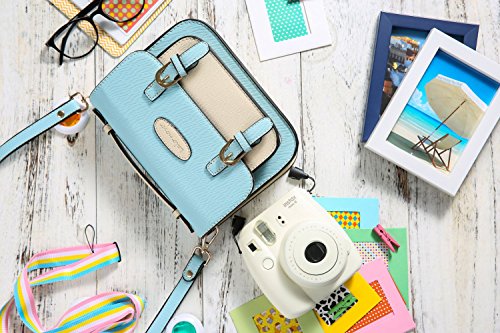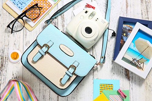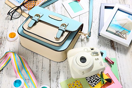 Mini 9 Instant Camera Accessories Case - Lalonovo Retro Vintage PU Leather Bag for Fujifilm Instax Mini 9/ Mini 8/ Mini 25/ Mini 50s/ Mini 90/ Mini 9 Instant Film Camera with Shoulder Strap (Blue)