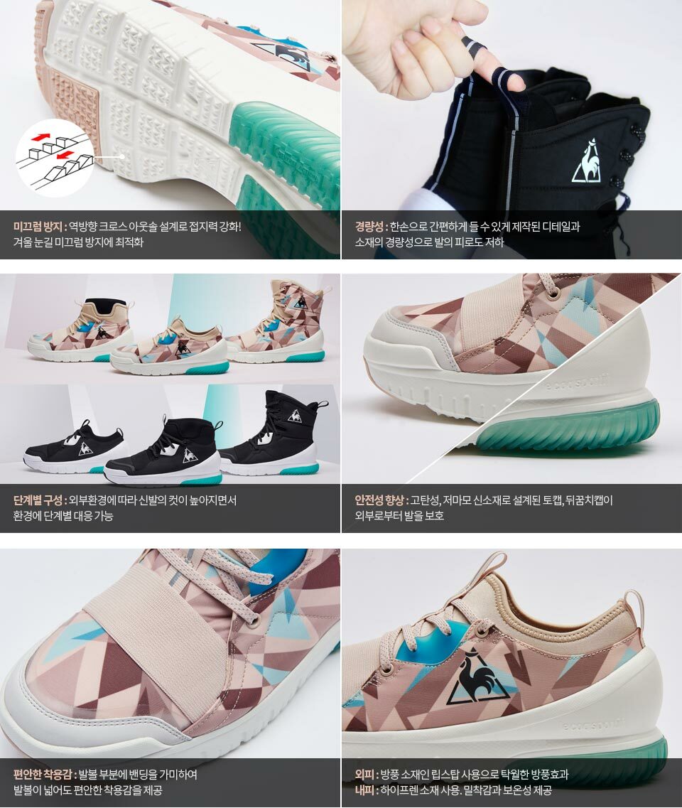 방풍소재와 하이프렌 소재 사용하여 보온성이 좋은 슈즈입니다.
