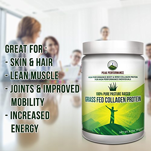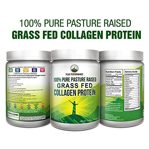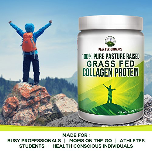 Peak Performance Pure Pasture Raised Grass Fed Hydrolyzed Collagen Protein is Paleo Friendly, GMO Free, Gluten Free, Soy Free and Dairy Free and is quick and easy to mix in hot & cold liquids: coffee, smoothies, soups etc.